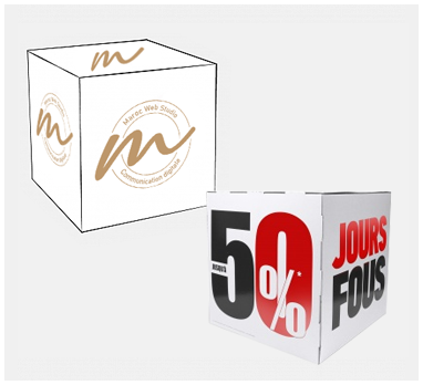 Le cube en carton se présente comme un support de communication original pour votre entreprise. Il vous permettra de mettre en avant un événement ou votre entreprise dans vos locaux ou encore durant un salon. Le cube peut être placé au sol, en suspension, sur un comptoir ou encore en vitrine…