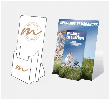 Le porte documents vous permet de mettre en valeur vos brochures et dépliants. Poser sur un comptoir ou une table, au sein de votre enseigne ou d'un stand de salon, le porte document vous apporte un réel appui pour la diffusion de vos supports de communication…