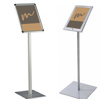 Porte visuel avec cadre clippant sur pied, idéal pour de vos salons, showrooms et lieux d'exposition. Ce présentoir vous permet d'insérer un visuel A4 et A3 en mode vertical ou horizontal selon votre convenance et de le présenter en hauteur légèrement incliné pour attirer le regard…