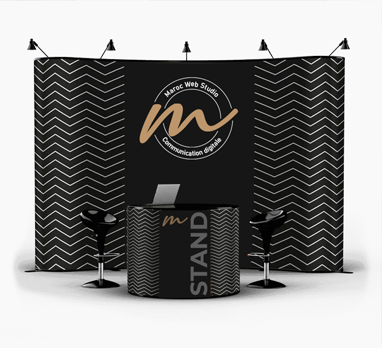 Grâce à la simplicité de nos structures en profilé aluminium et visuel tissu sur mesure, vous aurez la possibilité de rester autonome sur le montage et démontage lors de vos salons.