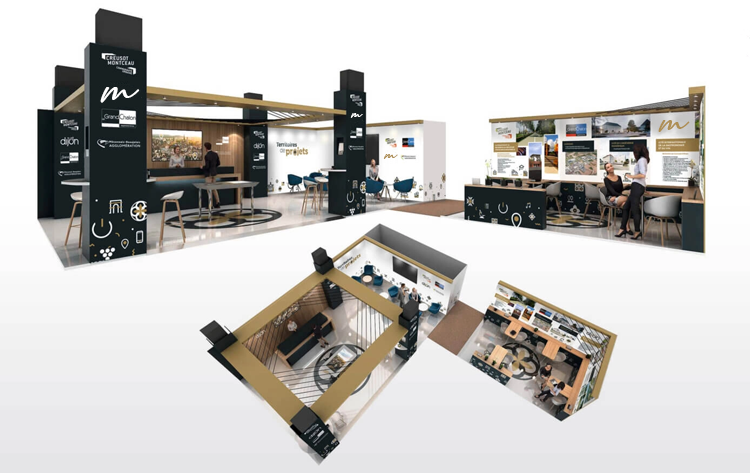 Notre studio PAO vous proposera des vues 3D afin d’avoir une vision optimale du résultat de votre stand. Vous pourrez ainsi visualiser les différents espaces, le mobilier à privilégier, et l’esthétisme global.