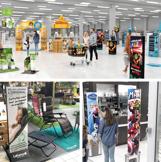 Excellent support publicitaire pour mettre en avant vos produits ou services en magasin, la plv est un moyen parfait pour communiquer directement avec le consommateur. Celle-ci se présente sous une multitude de forme tel que le célèbre totem pour magasin.